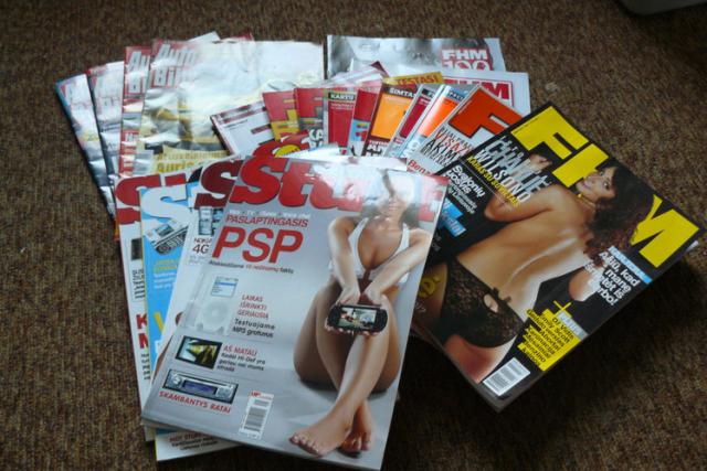Nemaža krūvelė įvairiausių vyriškų žurnalų. 2/3 visų lietuviškų FHM numerių su visais priedais, Stuff, AutoBild. Foto pavaizduoti nevisi. Viso yra apie 30 vnt.