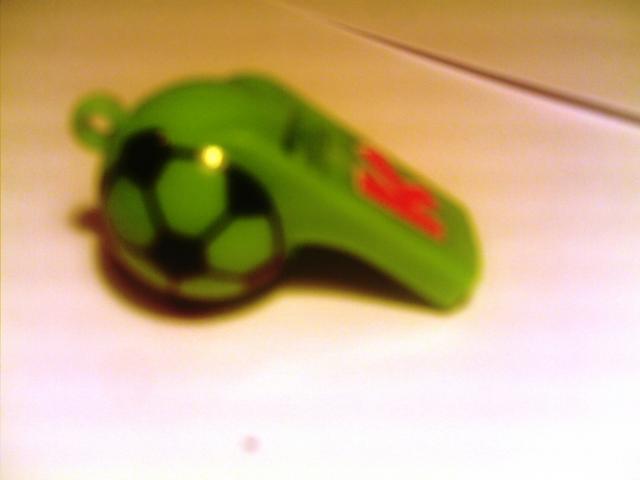 Švilpukas žalios spalvos-salotinės- nuo Kubuš sulčių.Yra raudona K raidė( ala emblema kubušo) ir apipavidalintas į futbolo kamuolį. Tik atsiprašau, foto nelabai kokybiškos ;/