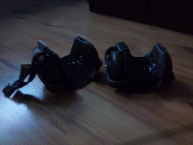 Kulniniai riedučiai juodos spalvos. Važiuojant žibsi ratukai. Dedami ant batų lygaus pado. Nuotraukoje siek tiek purvini, o šiaip jie švarūs. Nesiunčiu į kitus miestus