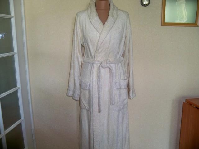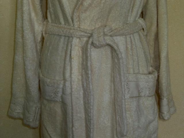Pirktas KURIMA parduotuvėje, kuri prekiauja kokybiškais chalatais. Mokėta 330 litų. Nešiotas, bet būklė tikrai dar gera.Šiek tiek apsivėlęs ( vidinėje pusėje). Bet tikrai lengvai pataisoma. O kokybė garantuota. Gražiai siuvinėta apykaklė, kišenės, rankogaliai. Rašo 176 ūgio damai , krūtinės apimtis 88-92 cm. Kas vertina kokybę, tai chalatas būtent jums :) NEMAINAU 70 proc. medvilnė, 30 proc.bambukas plius siuntimo išlaidos.