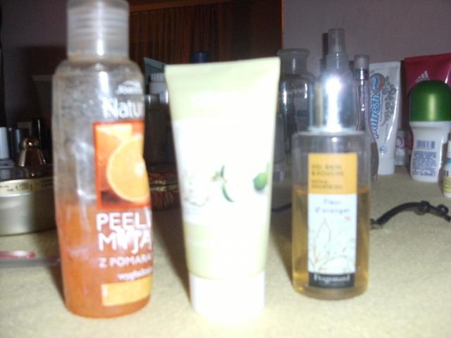 PIRMAS- šveitiklis kūnui iš Lenkijos, matot kiek beliko,turiu kitą,šito nebereikia. Su akmenėliais. Buteliukas suglamžytas. ANTRAS- kaukė veidui su jazminų ekstraktu,porą kartų bandyta, man netiko. Galite rasti ORIFLAME KATALOGE. TREČIAS- TIKRA (todėl mainų kaina aukšta) iš Prancūzijos dušo žėlė kūnui. Man kvapas nepatiko,todėl mainau. Aukštos kokybės daiktas, porą kartų naudojau.