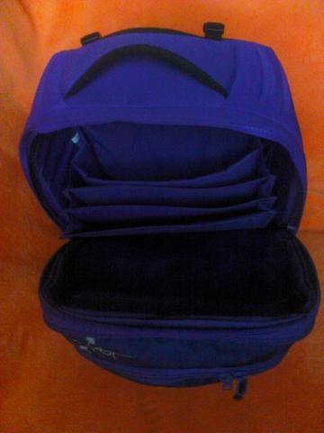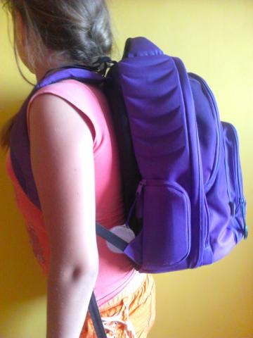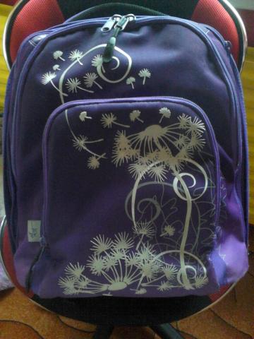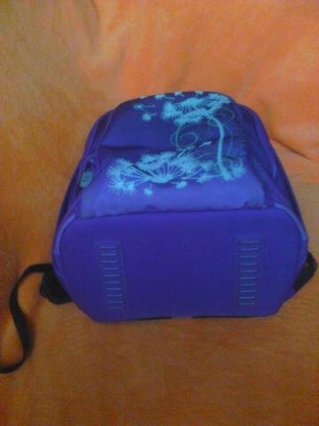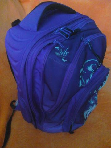 Kuprinė labai geram stovį,violetinės spalvos, nesuplyšus niekur, nenudilus, pirkta firminėje parduotuvėje. Kvėpuojanti, orui laidi medžiaga. Turi tris skyrius užtraukiamus užtrauktukais,kiekviename skyriuje daug kišenių: knygoms sąsiuviniams, telefonui, pieštukams, trintukams, namų raktams prikabinimas, yra galimybė,jei nereikia, išimti antro skyriaus vidinę dalį,standi lagamino tipo yra praplatinimas. Visi paminkštinimai,kad nenuspaustų pečių. Aukštis 40cm, plotis 34cm.