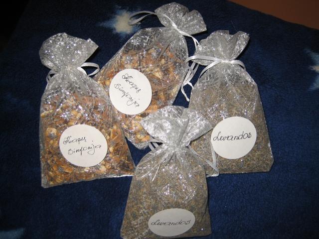 Dvieju rusiu: levandu kvapo ir kvapu simfonija.Tinka deti i spintas prie rubu,patalynes ir siaip i lentynas,idealus priedas prie dovanos.Labai geras variantas levandas su visu maisiuku deti i vonia....jos ramina,atpalaiduoja....teigiamai veikia nervu sistema,minkstina oda...(turiu daug vnt.) 1vnt. kaina 4lt. 100%naturalus,jokiu priedu.