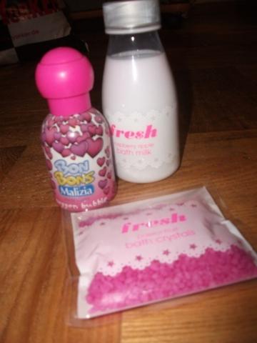 duso pienas, bon bons kvepaliukai ir duso druska, viskas labai skaniai kvepia, viskas nauja, isskyrus kvepaliukus, tik pabandyti. galiu keist kartu arba atskirai;)