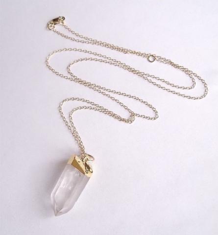 Su aukso spalvos detalėmis bei grnadinėle. Grandinėlės ilgis - 60cm Turiu ne vieną, tad perkant pasakykite koio kristalo noris - pailgesnio ar apvalesnio, didesnio ar mažesnio :)