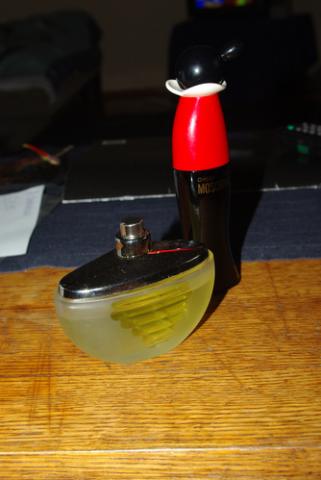 originalus abeji,pirkti Oslo orouostuose,bet taip ir nepritape kvepalai.Mochino 50nl,like manau apie puse,Ceruti 1881 nunaudota nuo 100ml koks 15procentu,tikrai daug dar yra,tik neber kamstelio,bet tai netrugdo naudotis,nes purkstukas veiksnus:)