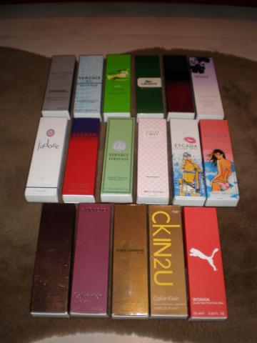 Kvepaliukai po 20 ml. Didelis pasirinkimas is tokiu firmu kvepalu kaip: Armani , Gucci, Lacoste, Escada, Versace, Puma, Christian dior, Hugo Boss, Calvin Klein, Carolina Herrera, Paco rabanne, Bruno bannani ir tt. Siunciu pastu i visus miestus.