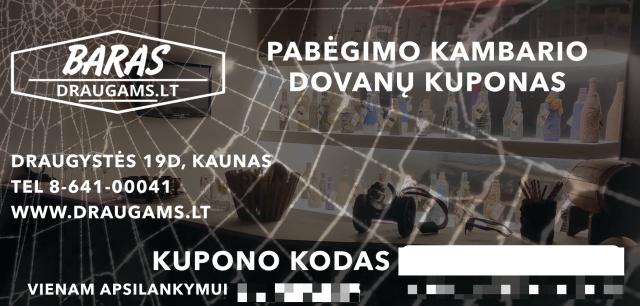 Kvietimas į pabėgimo kambarį "BARAS". Pabėgimo kambarys priima net iki 10-ies lankytojų grupes. Pabėgimo kambarys Kaune - Draugystės 19D. Kambarys dirba visą savaitę.