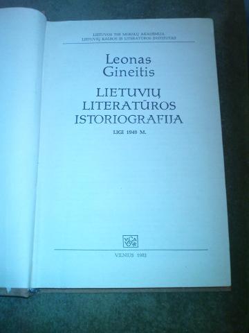 l. gineitis - lietuviu literaturos istoriografija iki 1940 m.