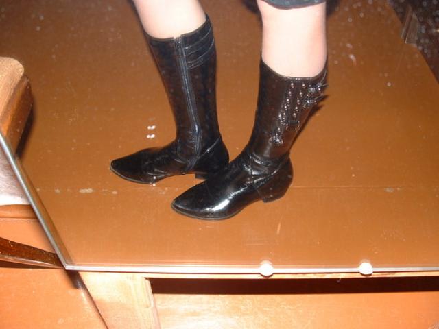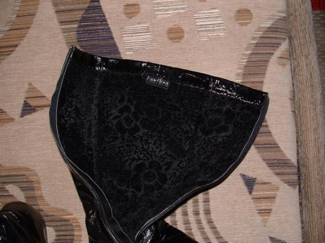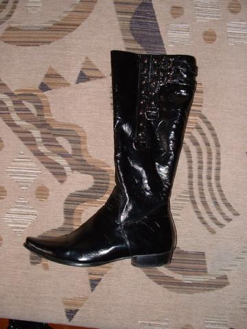 Lakuoti pusilgiai labai patogus demisezoniniai batai, kulniukas vos keli cm. Mazai nesioti, nes dydis vis delto neatitiko mano kojai. Dydis 37-37.5. Yra smulkiu defektu (siek tiek pabrazyta), taciau nelabai matosi.