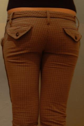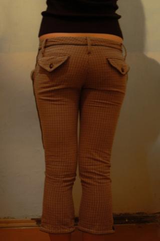 s dydžio kelnės.labai fainos,bet man per siauros. užpakaly prie sagos buvo šiektiek prairę,bet sutvarkyta ir visai nesimato