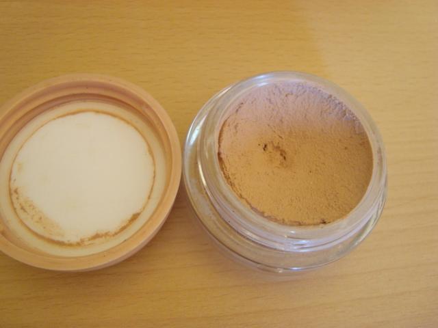 kreminė,bet na ta,tokia puri,nu žinot :) likę tikrai daug,kelis kart tik pabandyta,nusipirkau naują tai šitos nebenaudoju.
