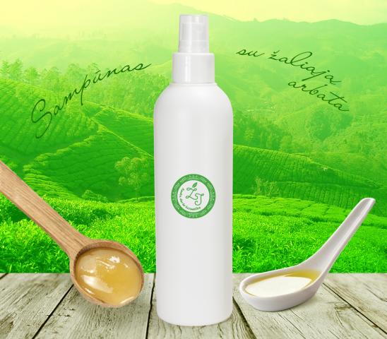 Kaina: 250 ml 22 Lt. Galioja 12 mėn. Sudėtis: žalioji arbata, bazė, medus, ylang ylang eterinis aliejus, skystas šilkas, provitaminas B5, GSE. Medus plaukams suteikia žvilgesio, maitina, drėkina, o žalioji arbata ramina galvos odą, skatina plaukų augimą, minkština ir stiprina plaukus, mažina pleiskanas, šilkas suteikia plaukams švelnumą, palaiko drėgmę. Provitaminas B5 sustiprins plaukučius. Tad naudojančios turės sveikus ir žvilgančius plaukus. Naudojimas: gerai sušlapinti plaukus, tada papurkšti šampūno i