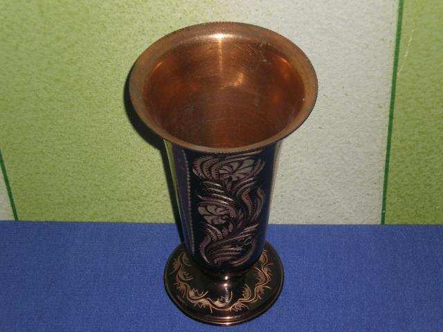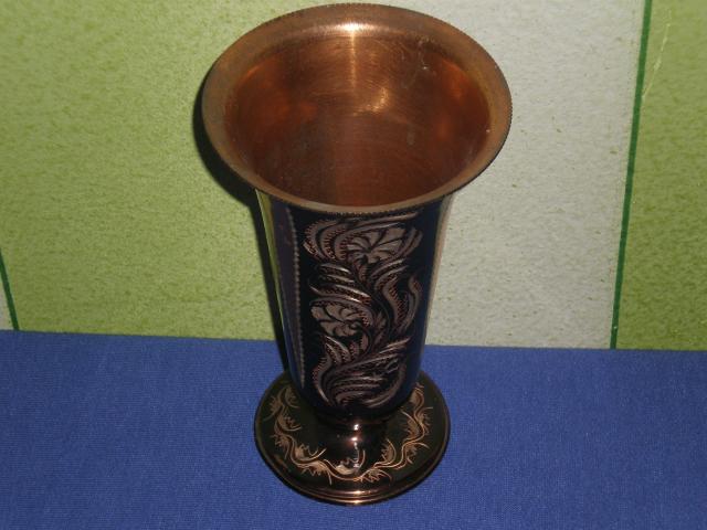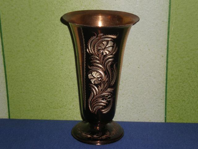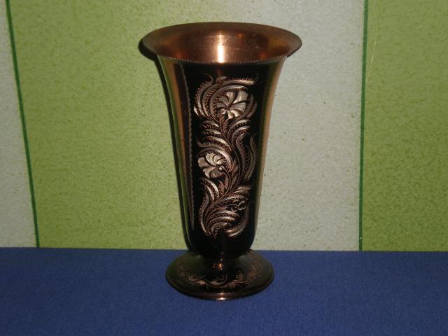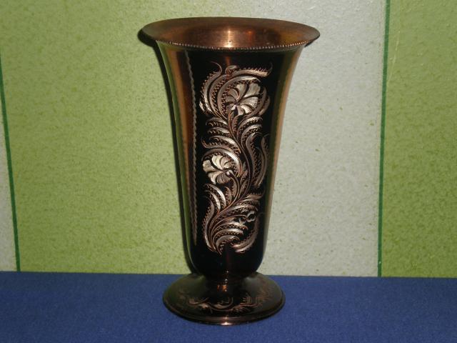 Labai grazi bronzine ranku darbo vazele (vaza) su raizytomis gelemis ir lapeliais
