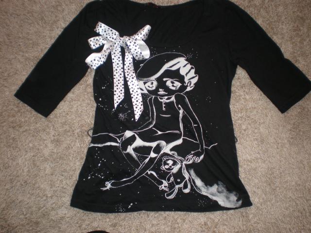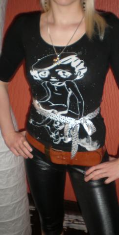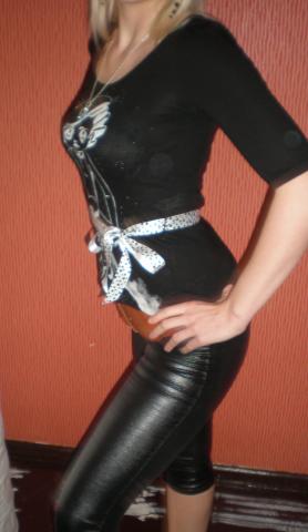 Superine bliuskyte 3/4rankovem ir su baltu atlasiniu kaspinu, kuri galima risti kaip dirzeli ir kaip kaspina.Dydis M, bet tinka ir L.