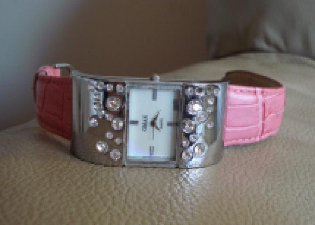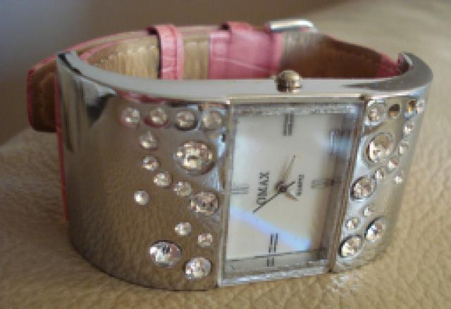 Labai dailus laikrodis, apyrankė nenutrinta, kaip nauja, korpusas sidabro spalvos papuoštas akmenukais, nesugedes, pakeista nauja baterija. plotis: 3cm Daugiau drabuziu rasite cia: http://www.manodrabuziai.lt/narys/7568-willmute