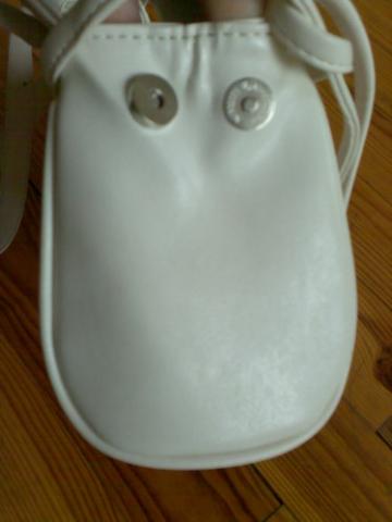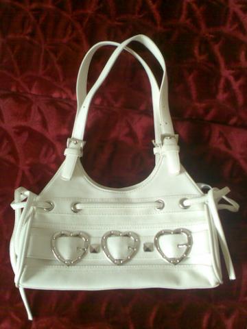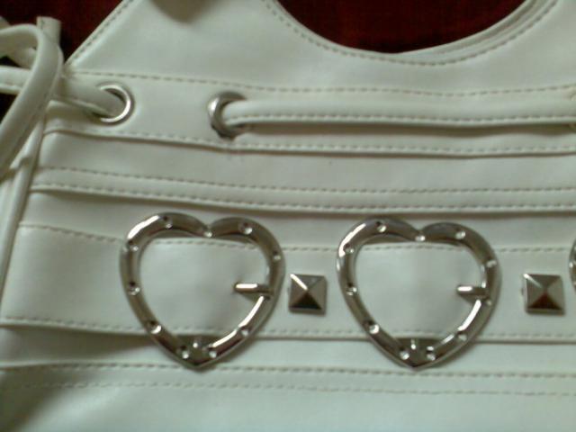 Kelis kartus nesiotas baltas nedidelis rankinukas. Labai grazus ir isskirtinis savo papuosimu - sirdelem.