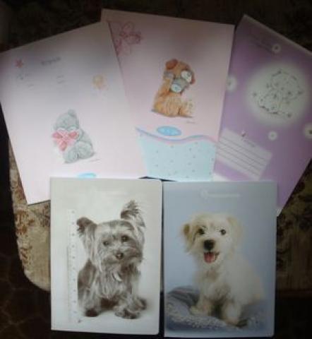 5vnt,3 iš Rusijos =) Paveikslėliai tokie mieli...sąsiuviniai linijomis,Su šuniukais po 60l,su išmeromis po 12l ir kita 48l http://www.mainyk.lt/daiktas/labai-grazus-sasiuviniai/123849
