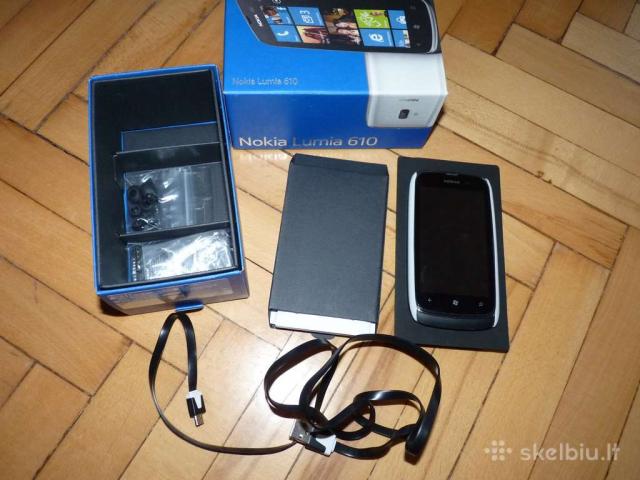 Labai mazai naudotas mobilusis telefonas Nokia Lumia 610 ir viskas kas jam priklauso