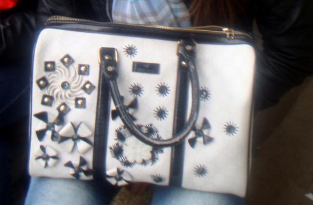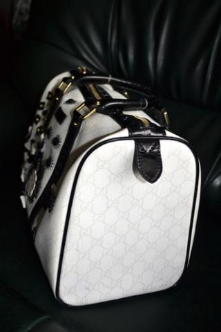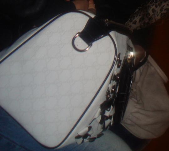 parduodu keturkampes formos tasyte, visas priekis puostas, tai gelytem, tai blingais, tasyte labai labai grazi. tik jau nebe nauja, rankenytes aptrintos, priekis neaptrintas, gelytes viskas islike, nera nukritusio nei vieno blingo.nugara neaptrinta. sonu krascikai truputi ;( del to kaina yra zema.. tase alia guci, tai visa tasyte puosia gucci rastas
