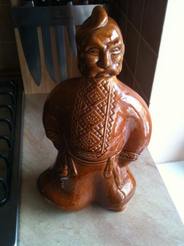 Nė karto nebuvo naudotas, tik nuo ausies nukritęs lakas, nes labai senas. Aukštis 33cm, talpa 1,7l