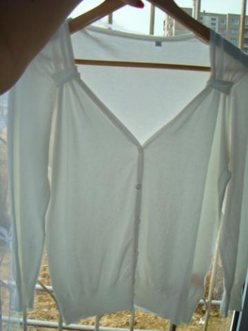 Parduodu nauja megztukas, jis yra begalo svelnus, nenesiotas. Jis yra idomus tuo, kad sone yra dvi kilputes, pro kurias galime praverti ivairiausias skareles;) labai puosia megstukas;) Neseniai pastebejau begalo maza skilute, kuri net nesimato, bet as kazkaip pastebejau kaip apziurinejau megztuka;) 2 pht ;) ( desineje puseje) tokia maza, kad per photo net sunku iziureti, siaip jis begalo svarus nera nei vienos demeles:) rankoves 3/4. puikiai tinka nesioti dabar;)