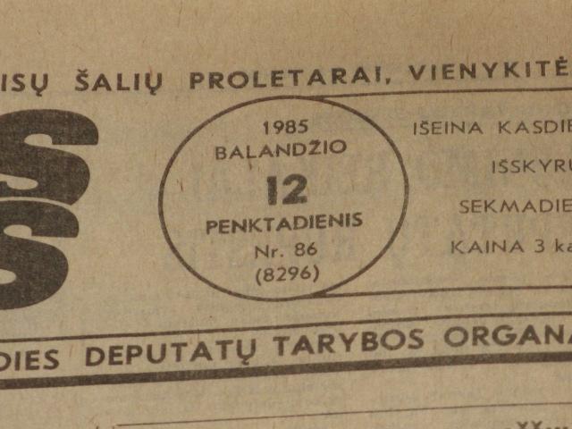 Laikrastis Vakarines naujienos 1985 balandzio 12