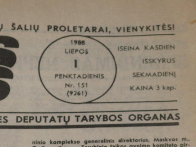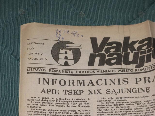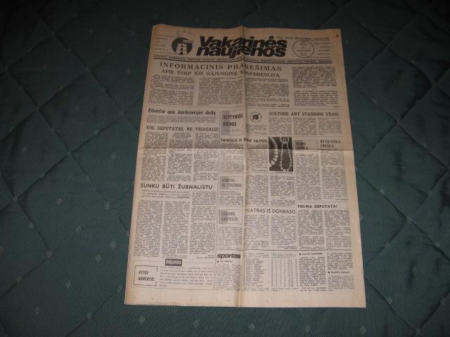 Laikraštis Vakarinės naujienos 1988m. liepos 1d.