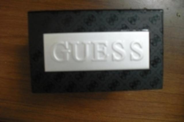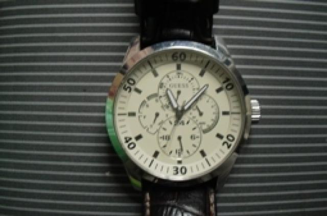 originalus "guess" laikrodis yra dezute su dukumentais. ruda odine apyranke.