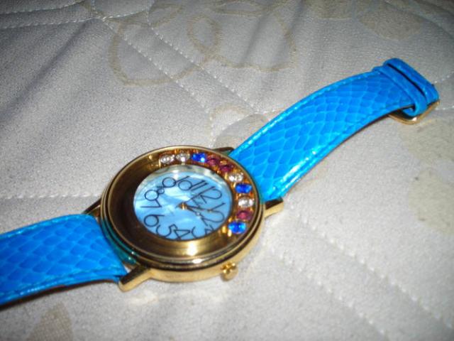 Neveikia, bet galima nesioti kaip papuosala. Aplink ciferblata rieda spalvoti kristaliukai.