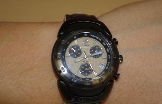 Devetas labai nedaug, veikiantis puikiai. Apsvietimas nakti. Laikrodis originalus, Timex geriausia laikrodziu gamintoja USA. Sio gamintojo laikrodi nesiojo USA prezidentas Bushas. Odine apyranke su visomis firmos ispaustomis amblemomis, ant dangtelio is vidaus isgraviruoti gaminto internetinis adresas, visa info apie imone ir t.t. Vienintelis minusas tai apyrankes vidine puse, nes ji yra sviesios spalvos. Laikrodzio verte apie 500 lt.