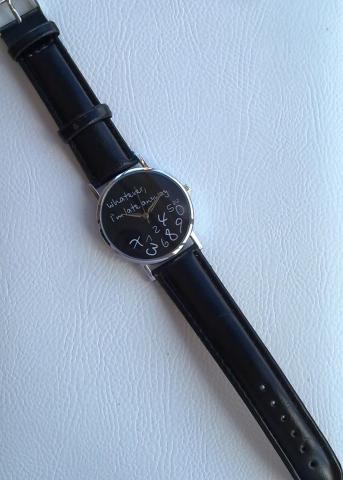 Naujas universalus rankinis laikrodis skirtas tiems, kurie nuolatos vėluoja. Tinka ir amžinai vėluojančiam draugui, kaip šmaikšti dovana. Apyrankė iš dirbtinės odos.