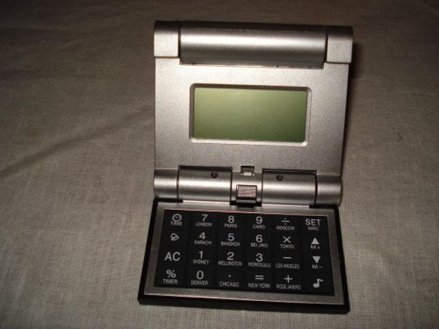 maza dežutė, kuri išsilanksto į pastatoma laikroduka-žadintuvą-skaičiuotuvą