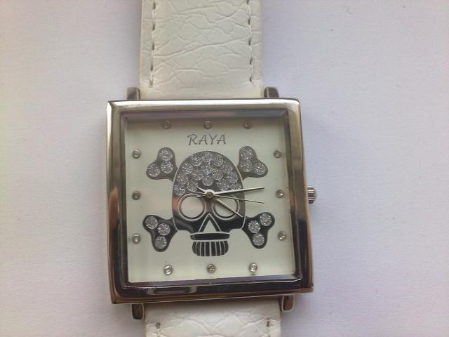 Moteriškas "Raya" laikrodis su sidabrinės spalvos kaukole viduryje. Svoris:41 g Matmenys: 22.5*3.6*0.6 cm