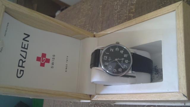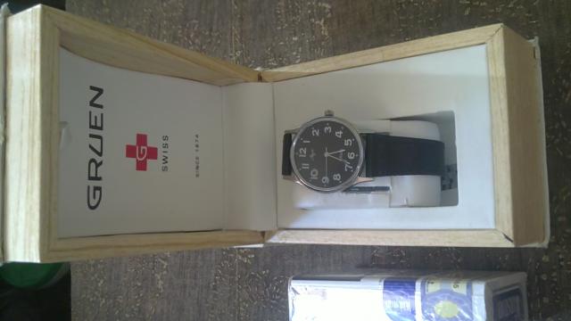 gruen swiss. kieto kartono,medzio imitacija,laikrodzio paduskele.virsus balta dirbtine oda,turi nubrozdinimu...