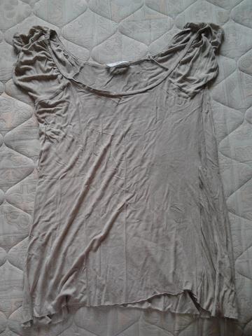 New look platėjanti palaidinė, gilia iškirpte, apačioje laisvai krenta, ši smėlio spalvos, su aukso švytėjimu, dar turiu lygiai tokią pačią pilką. Tiktų L-XL nešiojančioms.
