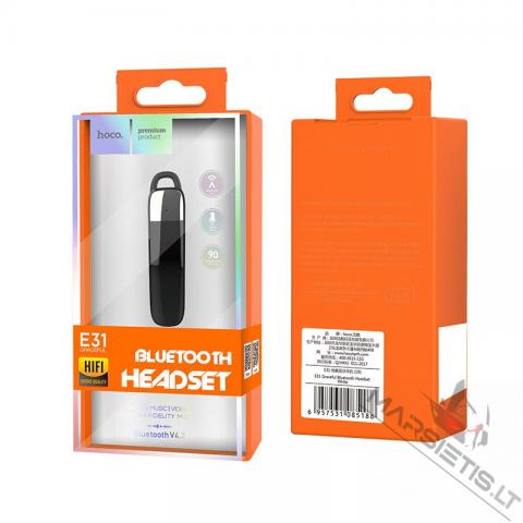 HOCO E31 GRACEFUL serijos Laisvų rankų įranga AKCIJA 15.79 eur. Pristatymas visoje Lietuvoje per 1-2d.d. Daugiau informacijos apie prekę: https://marsietis.lt/prekes/automobiliu-prekes/bluetooth-sistemos +37063977277 Vilniaus 230, Šiauliai arba Tilžės 107, Šiauliai Lengva ir patogi dėvėti lasivų rankų įranga. Stilinga išvaizda ir aukštos kokybės garsas. Greitas ir patogus susiejimas su bluetooth palaikančiu telefonu. Slopina aplinkos triukšmą. Kalbėjimas iki 3 valandų. Kokybiškas garsas. Mod