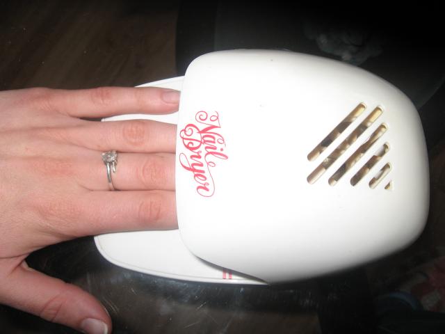 uzdedate pirstus, ir isijungia vejelis, kuris greit nudziovino laka ant naguciu.