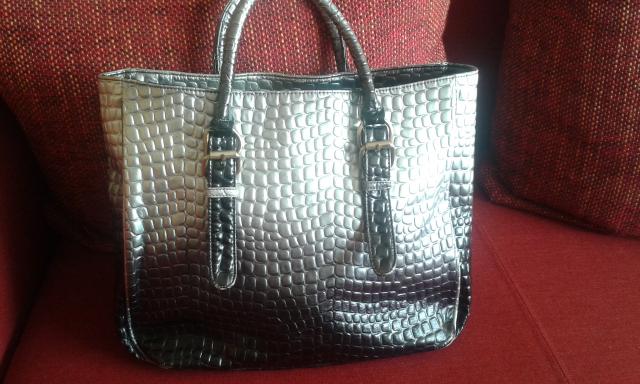 Lakuota, geros būklės tašytė, kurios viena pusė daugiau su sidabro spalva (šviesesnė), kita - daugiau su juoda spalva (tamsesnė).