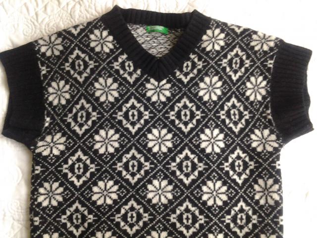Labai šilta,švelni,jauki, marga liemenė.100 % lamos vilna.Etiketėje dydis S,bet tinka M dydį nešiojančioms.Krūtinės apimtis 90 cm, ilgis 63 cm.