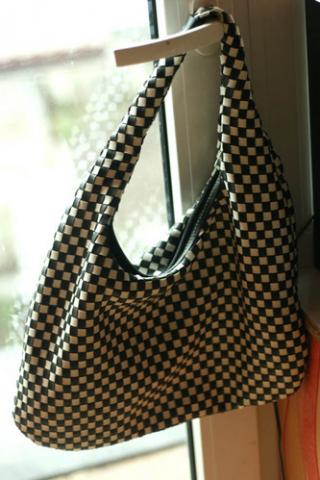 juodai/balta languota tašė, geros būklės, odos imitacijos.