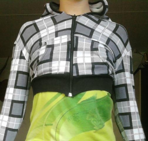 Madingas bolero su langeliais(kvadrateliais),parasytas dydis M/L bet zymiai mazesnes,cia labiau XS ir S mazesniam :) su kapisoniuku,turi dvi kiseneles priekyje.