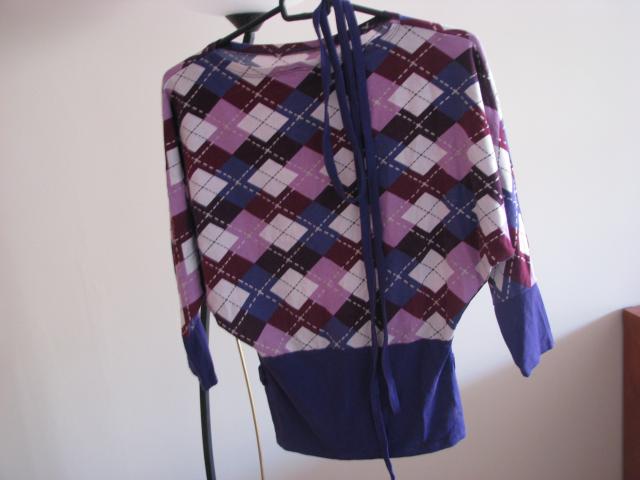 V formos languotas violetinis megztukas, tinka XS/S dydžiams, Labiau tiktų panelėm, turinčioms liekną liemenį, nes labai priglunda prie talijos.