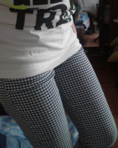 Bridžai su baltais ir tamsiai mėlynais langeliais. Patogūs, dailiai aptempia, elastingi, aukštesniu liemeniu. Geros būklės, be defektų. Išmatavimai nuotraukoje, kurios neišeina įkelti, todėl galiu atsiųsti į e-mail.