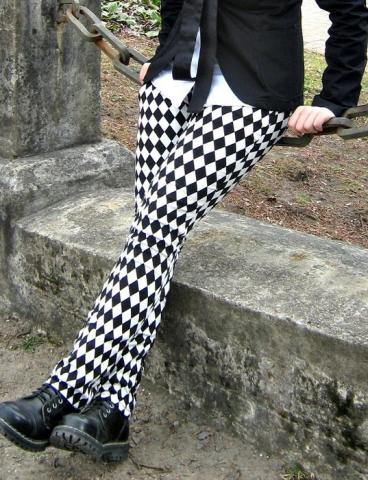 kelnes juodu ir baltu rombu rasto, labai grazio, plonos medziagos. naujos. pirktos fantasmagoria