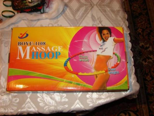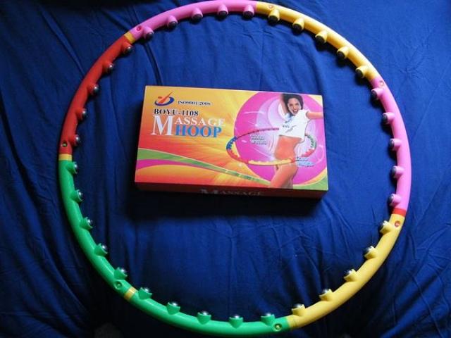 sudedamas masažuojamasis lankas, kuris masažuoja ir išjudina svarbiausius taškus jautriuose pilvo ir juosmens srityse. Per kelias minutes jus masažuos daugybe pirštų! Massage Hoop lankas turi taškinio masažo rutuliukus ir yra sudedamas iš 8 dalių, taigi išardytą lanką galėsite su savimi pasiimti i kelionę. Tai naujausia kalorijų deginimo ir riebalų naikinimo metodika, kuri yra ne tik smagi, bet ir verčia puikiai jaustis. Svoris 1200g