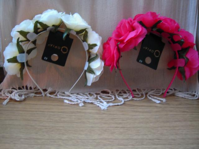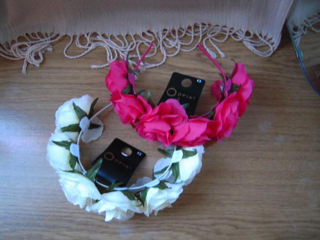 Lankeliai iš dirbtinių rožių, nauji, su etiketėmis, kainavo po 3 eur. Turiu vieną rožinį ir vieną pieno spalvos lankelį. Tiktų mergvakariui jaunajai ir pamergėms pasipuošti :)