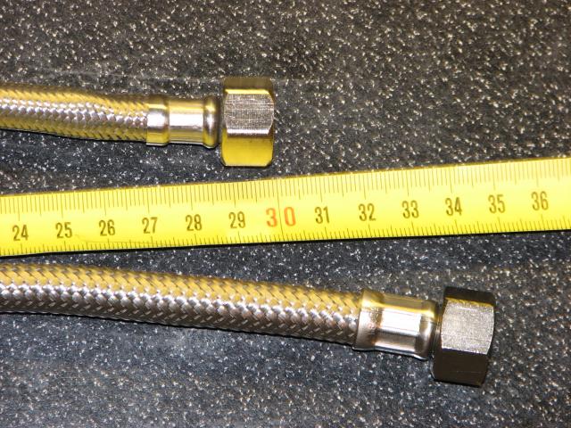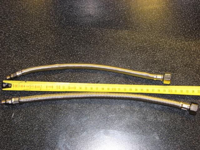 Naujos nenaudotos lanksčios maišytuvo žarnelės. 2 vnt. Viena ~30cm, kita ~35cm.