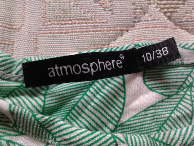 Keletą kartų vilkėta, geros medžiagos vasarinė palaidinė, marginta lapeliais, atrodo kaip ornamentai. Rašo S/M dydį, tačiau puikiai tiktų ir L nešiojančioms. Atmosphere.