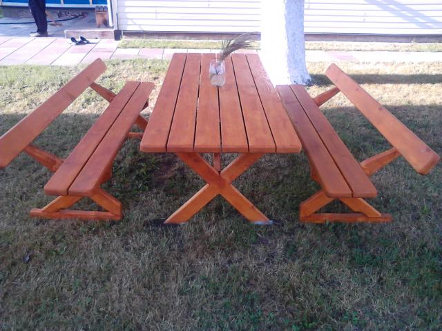 Lauko baldai pagal jusu ismatavimus is egles ar pusies. foto orginali. 2 paskutynes foto vidaus staliukas su kedute ir suoliuku